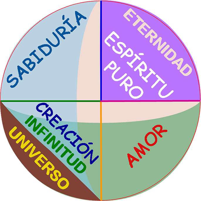 En Dios: 1) Su Vivencialidad o realidad viviente de plenitud eterna (de donde surge el Principio Vital), 2) Su Creación (de donde surge la Materia primordial y el término de Infinitud), 3) Su Amor (Principio Sensitivo, que en los seres va generando la Sensibilidad, base de lo Emocional), y 4) Su Sabiduría (base del Principio Inteligente):