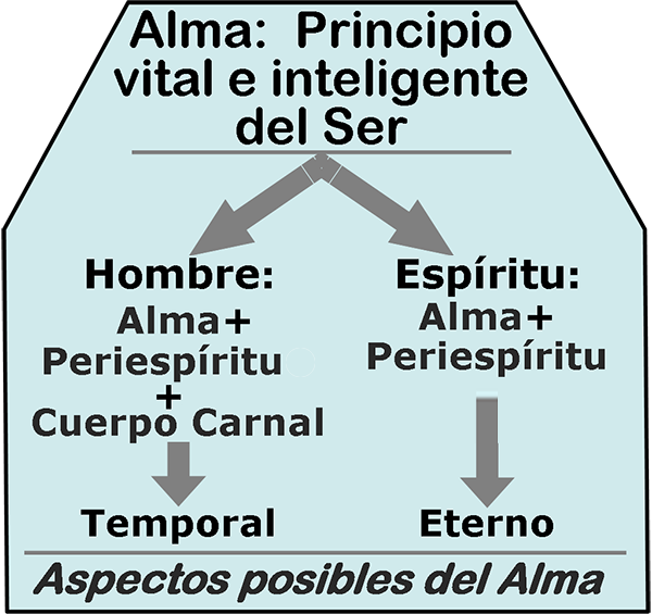 ¿Qué era el Espíritu antes de unirse a un cuerpo carnal? Era un Espíritu libre, un Alma con su revestimiento fluídico peculiar, habitando en los mundos o planos espirituales. El término "Espíritu" debe asociarse a una Entidad. El término "Alma", a una Potencia surgida de Dios. Así, un Espíritu es un Alma con su revestimiento peculiar que define su condición evolutiva alcanzada. Tal revestimiento espiritual le posibilita poder mostrarse como Ser específico diferenciado.
